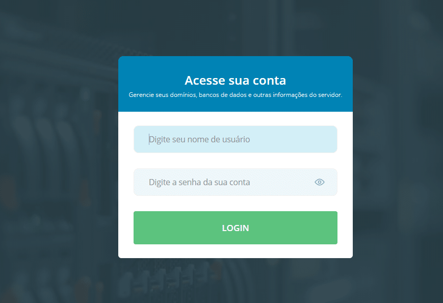 Primeiramente devemos acessar nosso painel fazendo login no DirectAdmin. O acesso a esse painel geralmente sempre será acessado pela porta 2222